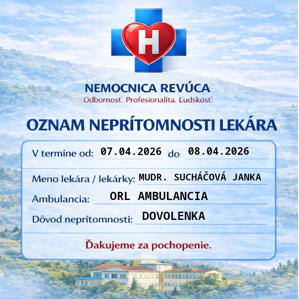 Týmto Vám oznamujeme, že dnešným dňom – 20.03.2026 – rušíme Zákaz návštev v NsP,n.o.Revúca, ktorý bol vydaný 06.02.2026.