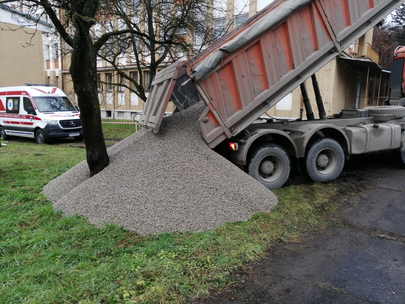 SMZ, a.s. Jelšava darovala štrk na cestu ku COVID oddeleniu.